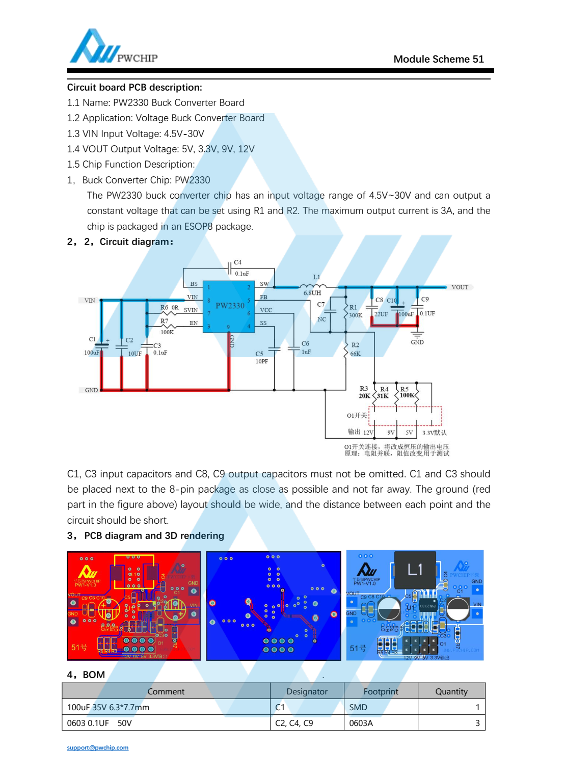 PW2330 Buck Converter BoardModule 51 PCB design scheme Wuxi PWChip